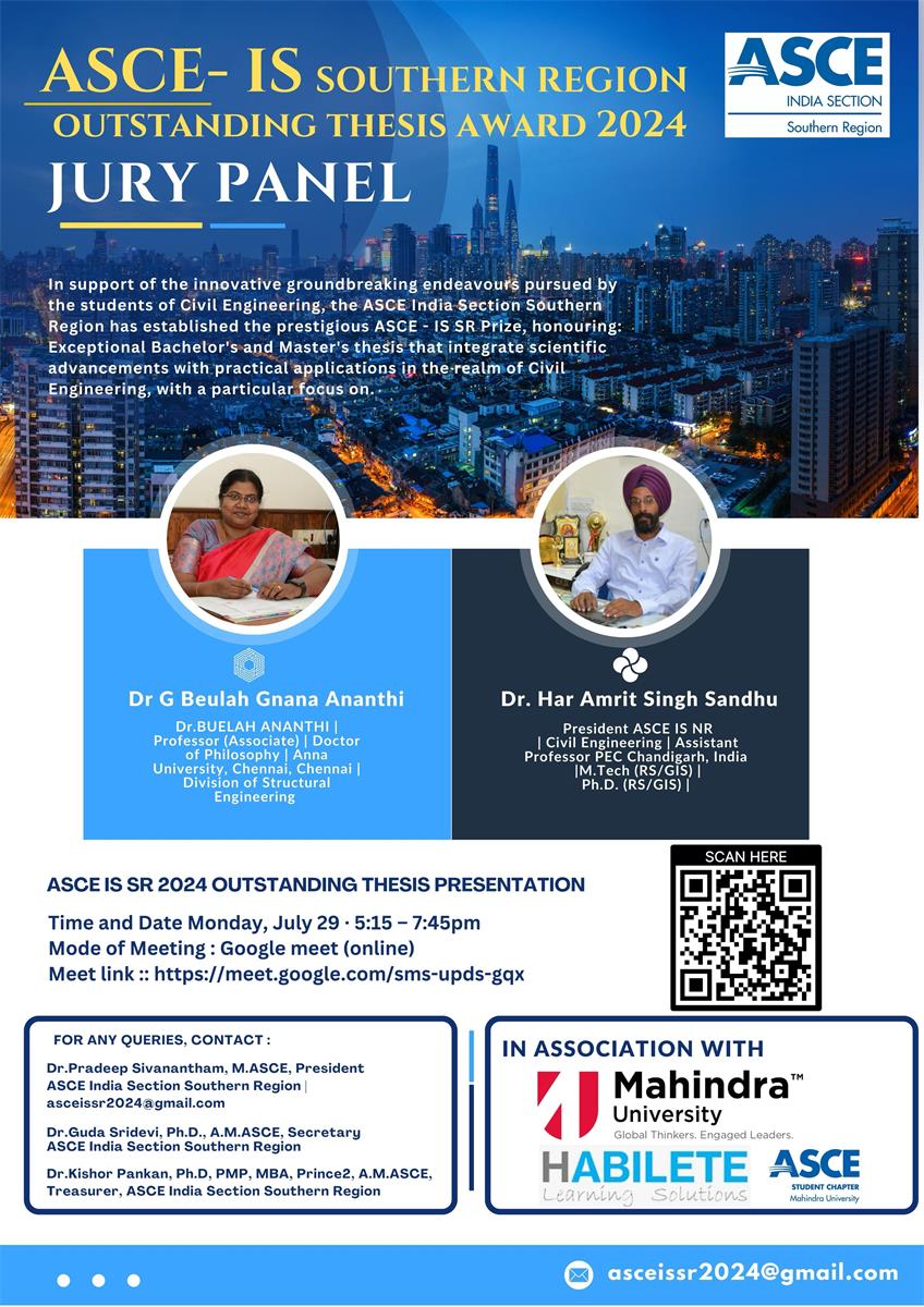 ASCE INDIA SECTION SOUTHERN REGION OUTSTANDING THESIS AWARD 2024