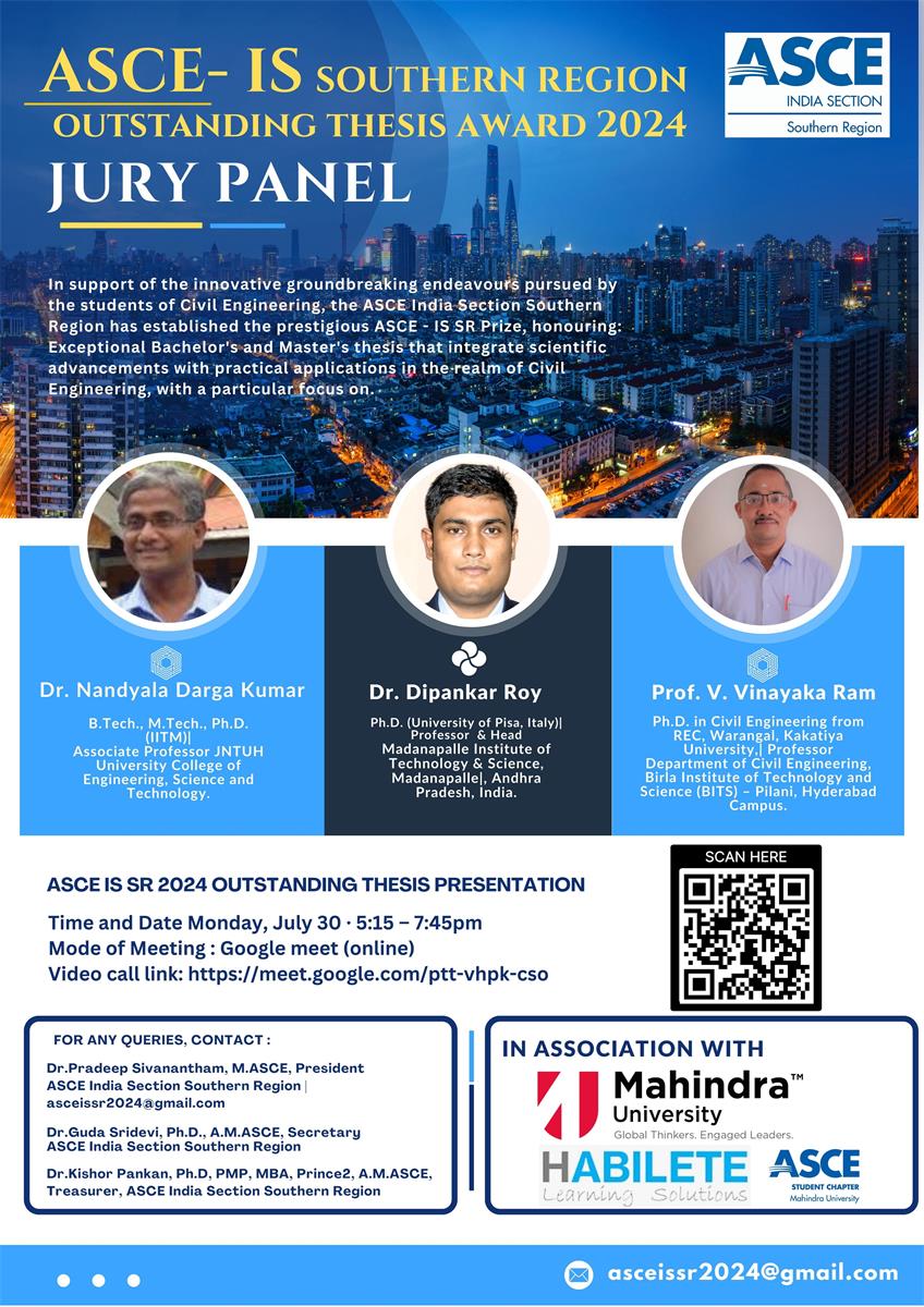 ASCE INDIA SECTION SOUTHERN REGION OUTSTANDING PG THESIS AWARD