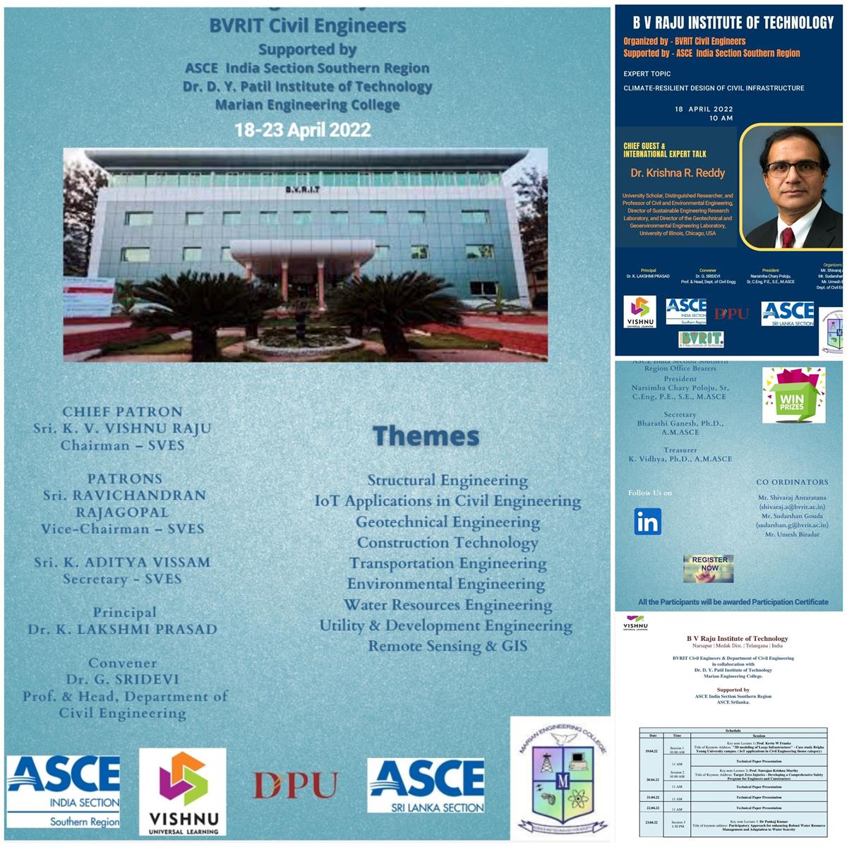 Team of BVRIT Civil Engineers (Inception) Student Chapter in association with Department of Civil Engineering B V Raju Institute of Technology Narsapur Telangana, and supported by ASCE India Section Southern Region, Dr. D. Y. Patil Institute of Technology Pune, and Marian Engineering College is organizing Student Technical content writing competition from 19th - 23rd April 2022.