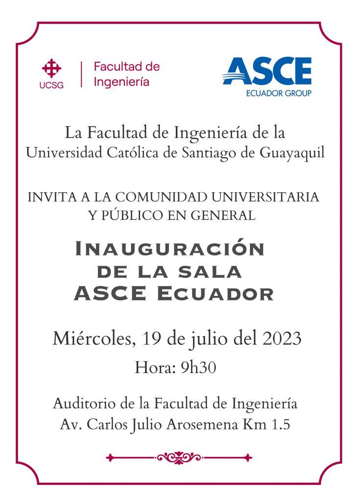 Se los invita cordialmente a participar en la inauguración de la oficina de ASCE-Ecuador.