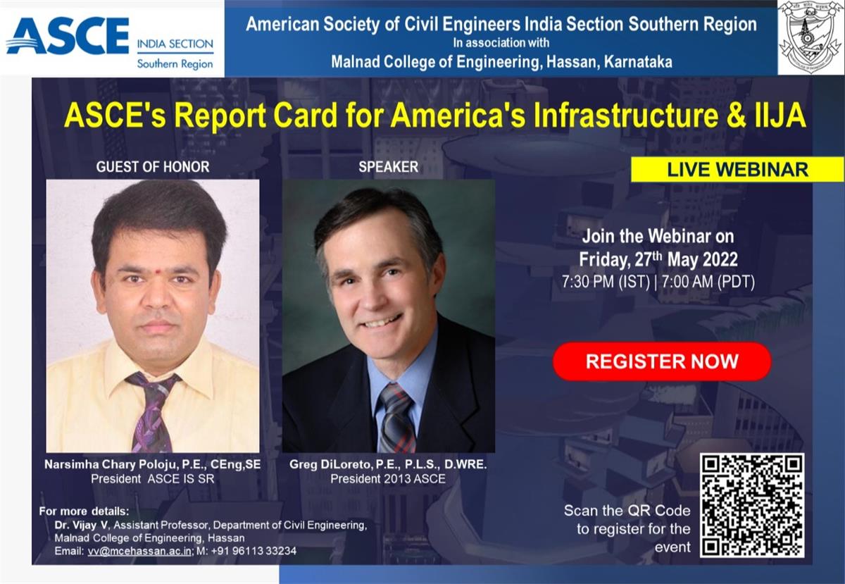 Invitation for Live Webinar on ASCE's Report card for Americas Infrastructure & IIJA on May 27 2022