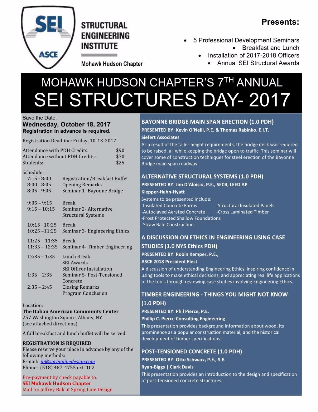 SEI Mohawk Hudson Chapter hosts 7th Annual SEI STRUCTURES DAY October 18th - PDH Opportunity!