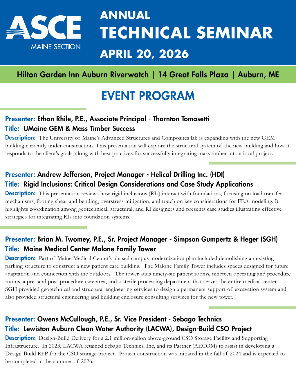2026 ASCE Maine Section Technical Seminar