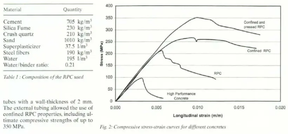 It was used the system in the he 1997 Sherbrooke Pedestrian/Bikeway Bridge in Quebec, Canada, was the world's first structure to use Reactive Powder Concrete (RPC) with a 200 MPa compressive strength.
